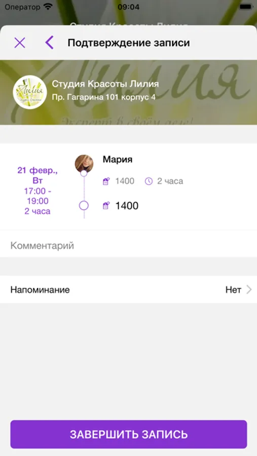* уточнить адреса салона с детальным описанием маршрута, а также: