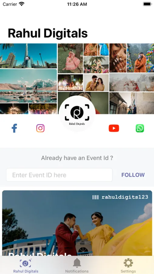 Rahul Digitals App is an Instant Photo sharing App, which lets you Pre-view and Share your Event photos