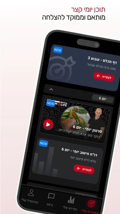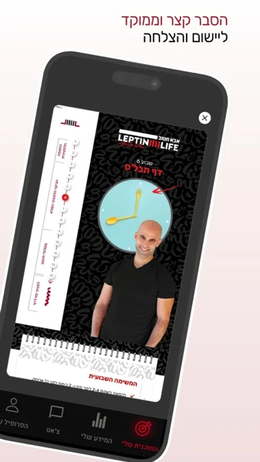 האפליקציה מאפשרת ניהול פרופיל אישי והצגת יעדים ומטרות, צפייה בתוכן וידאו יומי, קבלת דפי תכלס ממוקדים, תמיכה אישית על ידי מאמן שזמין לשאלות והתייעצות בצ׳אט האישי, מעקב יומי אחר התקדמות בתהליך וקבלת משוב.