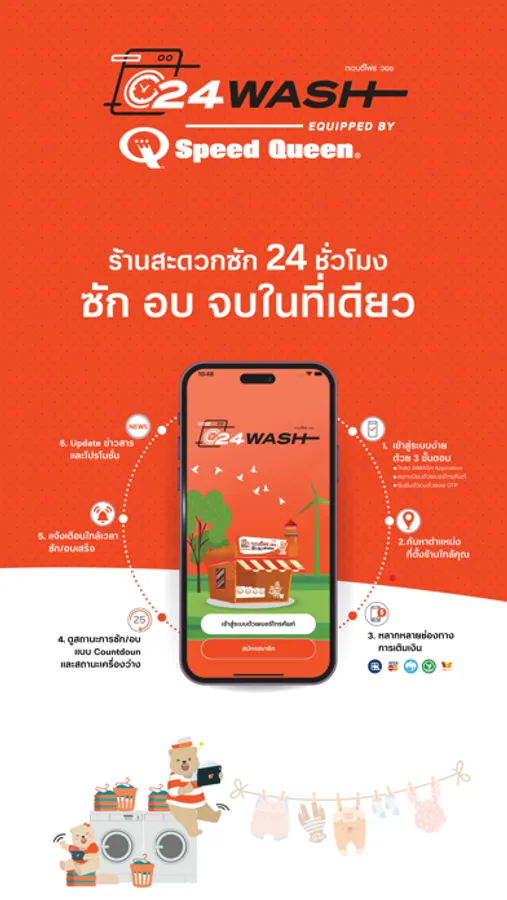 - ชำระเงินค่าซัก-อบ ได้หลากหลายช่องทาง เช่น QR พร้อมเพย์ โมบายแบงค์กิ้ง และบัตรเครดิต