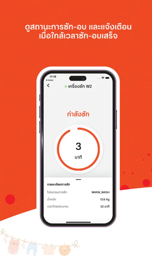 - แจ้งเตือนเมื่อการซัก-อบ สำเร็จ