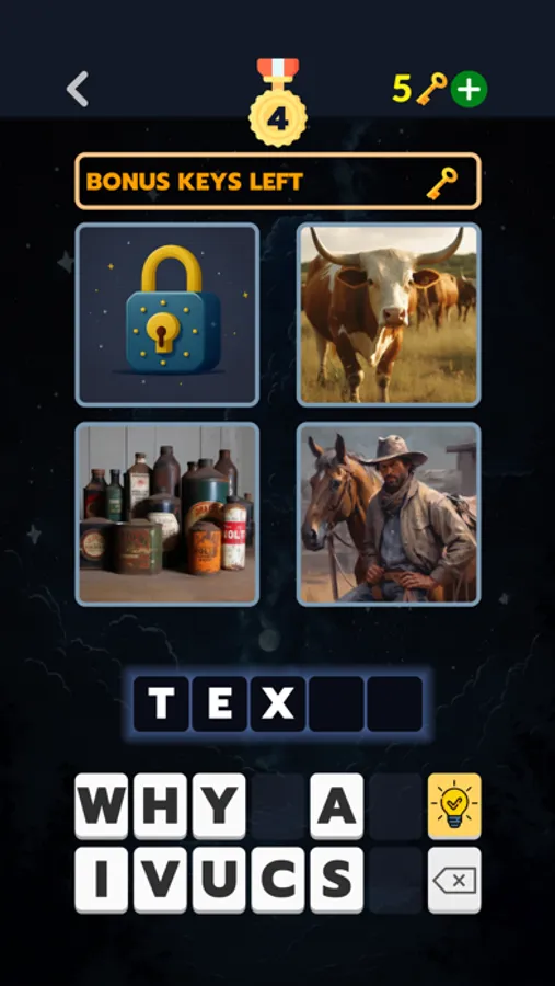 Challenge your mind with 4 pics 1 word! Experience the excitement of four pics one word as you guess the picture and conquer levels in this addictive game. Download this exciting game today and embark on a thrilling journey filled with countless levels and challenges. Discover the word that connects the pictures and become the ultimate picture game champion!