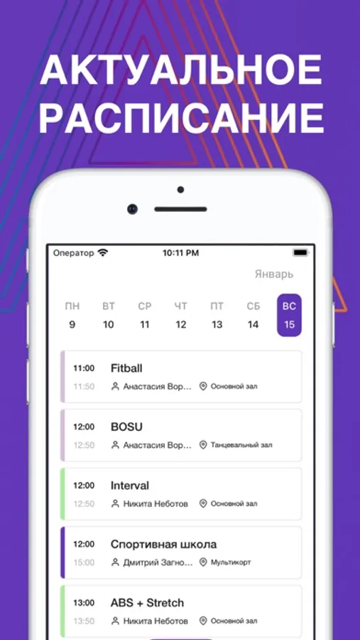 – Актуальное расписание: групповых и детских тренировок