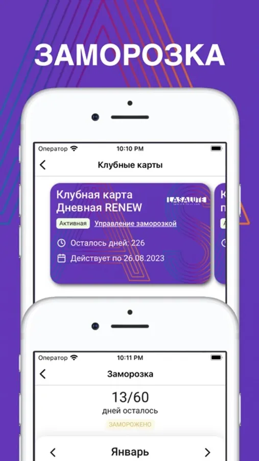 – Заморозка клубной карты