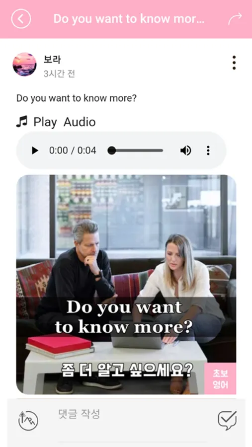 아침과 저녁으로 내용을 업데이트하므로 하루에 부담없는 두개의 초보영어회화표현을 익히실 수 있으며 꾸준히 학습하시면 원하시는 수준까지 도달하실수 있습니다.