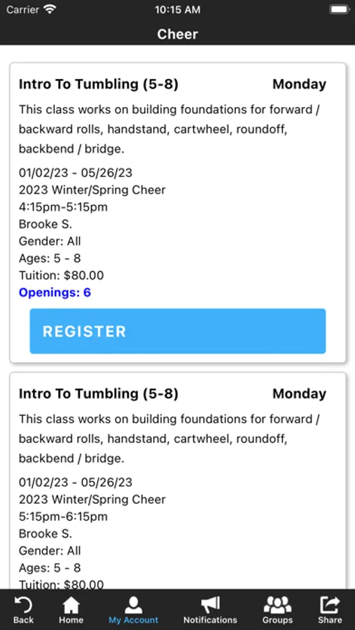 The BlackWatch Sports app allows you to manage your account with ease, register for classes, private lessons, and events. The app provides a QR code per athlete for class roll scanning at the facility. You'll also receive important notifications about class changes, closings, registration openings, special announcements, and upcoming events.