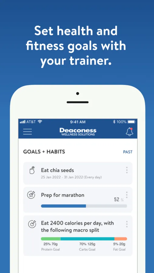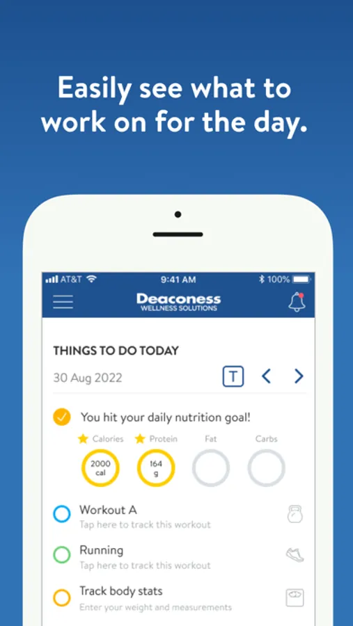 With the Deaconess Wellness Solutions App, you will have access to workout programs designed specifically to help you reach your fitness and health goals! You can follow & track your workouts, your nutrition, your lifestyle habits, measurements and results–all with the help of your coach.