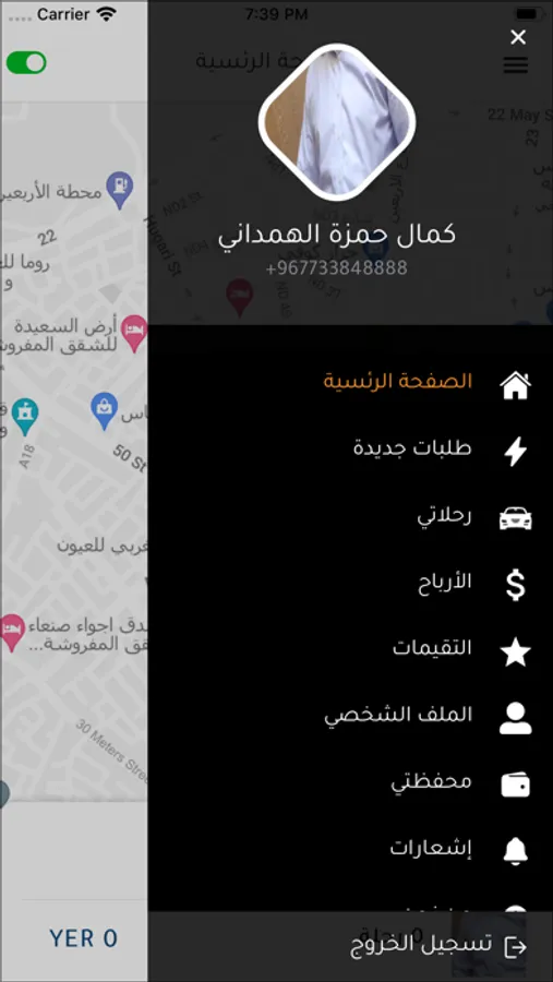 بعد وصول طلب للرحلة سيتم اعلامك بمكان العميل او الراكب ووجهت الراكب الى أي منطقة مع احتساب الوقت التقريبي والكيلومترات والسعر المطلوب لتنفيذ هذي الرحلة. في حال قبلت الرحلة سيتم اعلامك بمنطقة العميل وبيانات العميل كالاسم وتستطيع ان تنشا دردشة مع العميل لتخبره بانك في الطريق اليه ويستطيع العميل تتبعك عند الوصول الى الراكب يجب ان تضغط زر الوصول لتعلم الراكب باشعار انه تم الوصول الى مكانه وبعدها تستطيع بدء الرحلة وسيتم بعدها اعلامك من مكان الراكب الى وجهت توصيل الراكب وعند الوصول الى الوجهة يعمل زر انهاء الرحلة واستلام المبلغ اذا كان كاش واذا كان عن طريق المحفظة سيتم ايداعها في محفظة السائق.