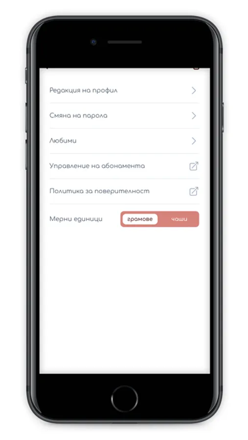 • Мерителни единици – Можеш да избираш дали да виждаш съставките в чаши или грамажи и да ги сменяш по всяко време.