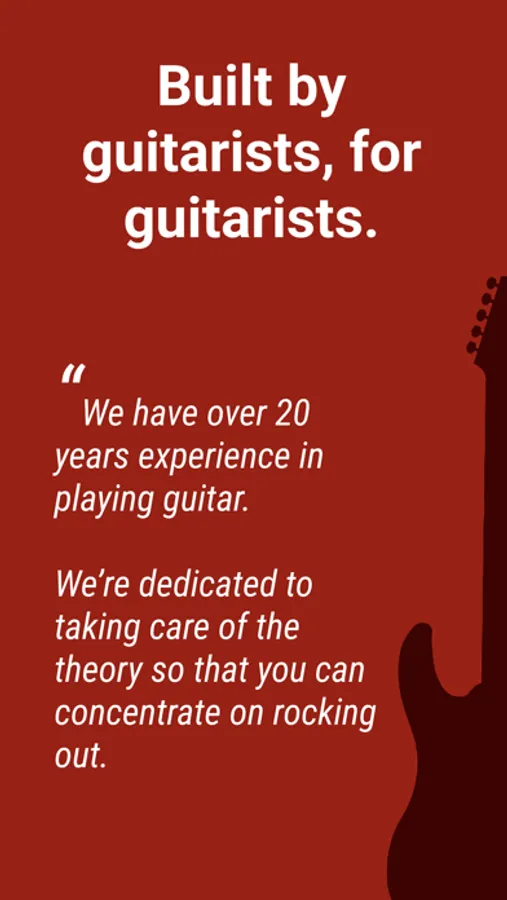 Scale Finder is built by guitarists, for guitarists. We have 20 years of guitar experience and use our own app to help us compose. In fact, this app was born because there wasn't anything good enough to fulfil our needs! We are dedicated to taking care of the theory so that you can concentrate on rocking out!