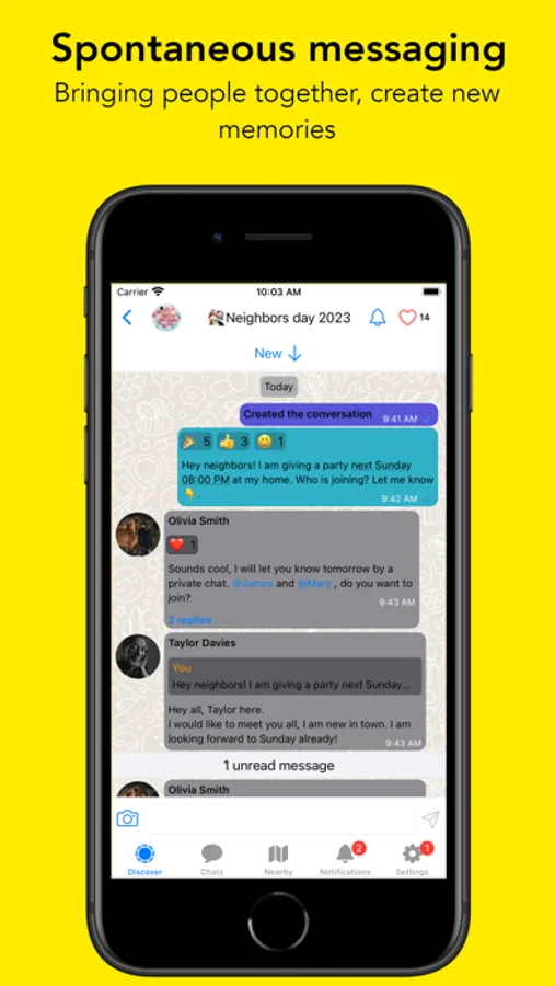 Meet new people and form connections with Beezle's public chat feature, perfect for when you're out and about, at events, or in a new place. Chat with people nearby and discover common interests, hobbies, and more. Whether you're at a concert, a sports game, or any other event, Beezle makes it easy to find and connect with like-minded individuals.