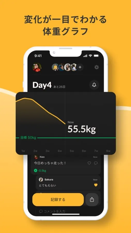 Instagramのストーリー機能と連携させて、気軽にダイエットの成果を共有できます!
