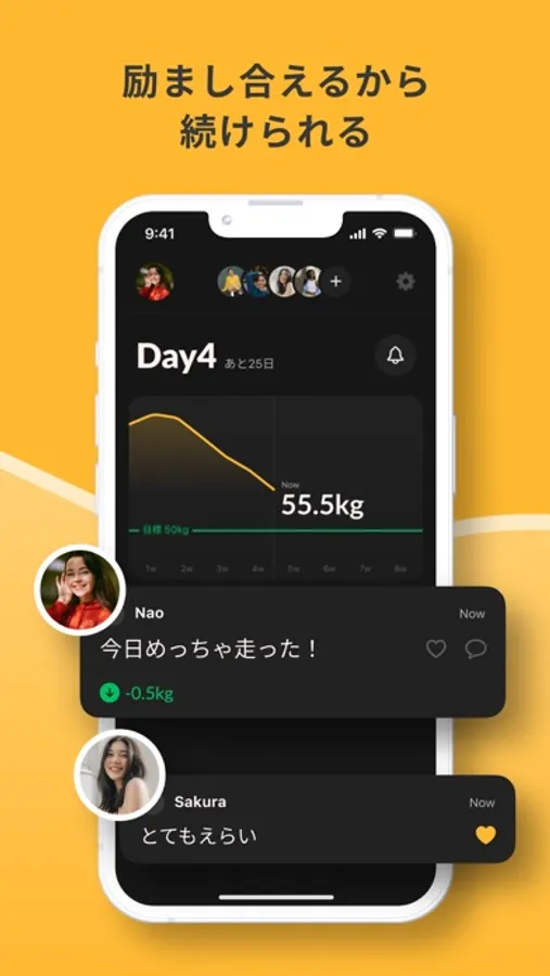 グループでダイエットができるコンセプトを活かすために、チャットやいいね機能を導入しました!