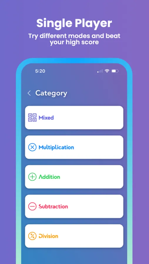 QuikMaths is a brand-new game that allows you to play timed, simple math rounds either with yourself, your friends, or a random opponent!