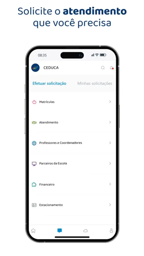 Este aplicativo facilita a comunicação entre todas as áreas da CEDUCA. Você poderá fazer por aqui as suas solicitações, receber suas atualizações e ser informado do que acontece de mais importante.