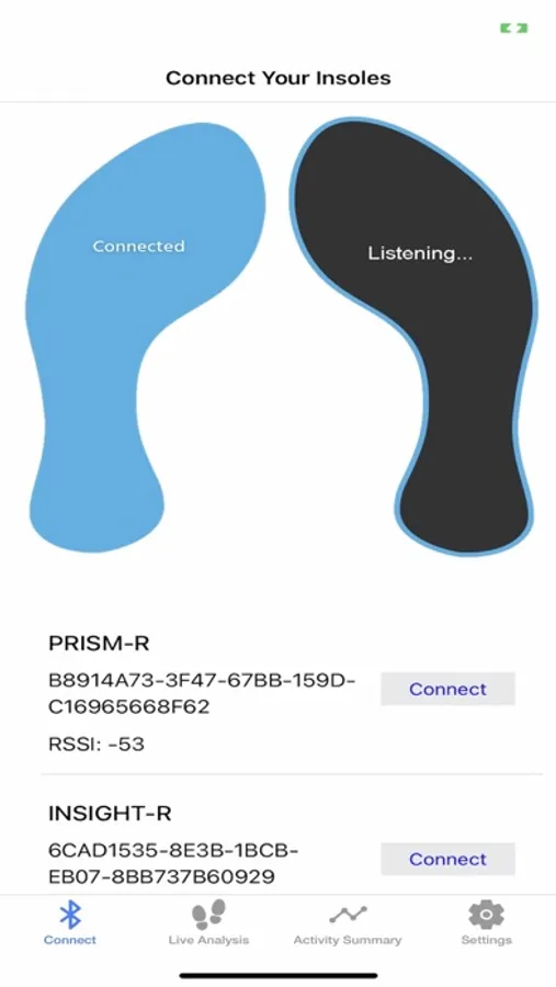 1. The app connects to the sensor insoles using BlueTooth LE. The app continue to run, will keep the connection, and will continue communicating with the insoles if connected, even in background mode with display off. This will impact the battery life of your phone.