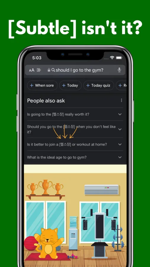Linguisticat doesn't make you spend a lot of time in the app, but wants you to do what you're going to do anyway -- browse the web! We use the words you already know and pair those with the words you want to learn, and show those to you while you browse the internet normally. By seeing words again and again and use nearby words as context clues, you'll memorize words quickly and increase your speed of reading these words as well.