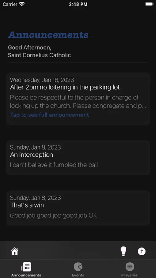 Church Board will allow your church to promote events, send announcements, and keep your Church business off multiple social media accounts. Keep in touch with all your members simultaneously without the need of phone numbers or their socials.