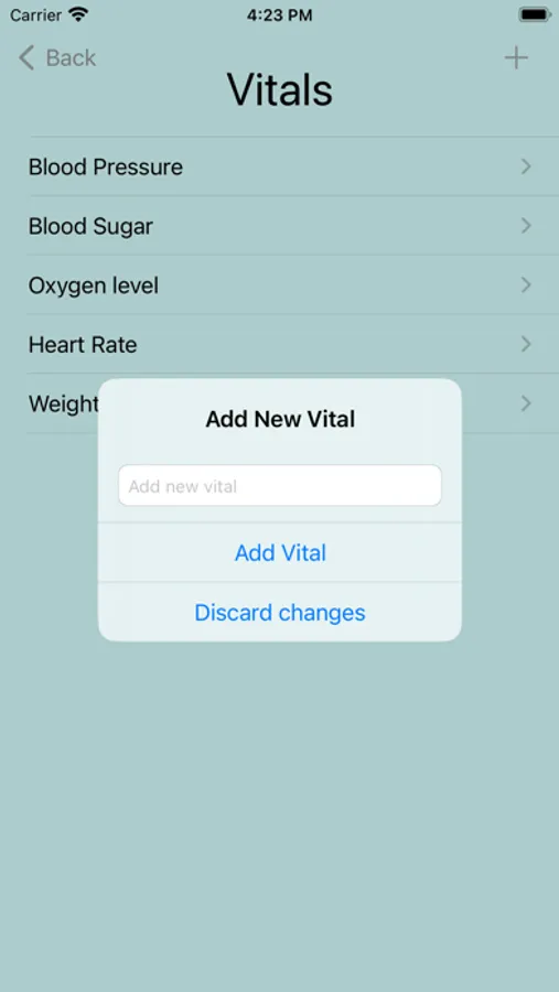 The app allows you to define the vitals you want to track as well as the frequency of tracking. For example, if you want to track your daily weight, you can. If you want to track your daily weight and morning blood pressure, you can. If you want to track your daily weight, fasting blood sugar, morning and evening blood pressure, and heart rate, you can!