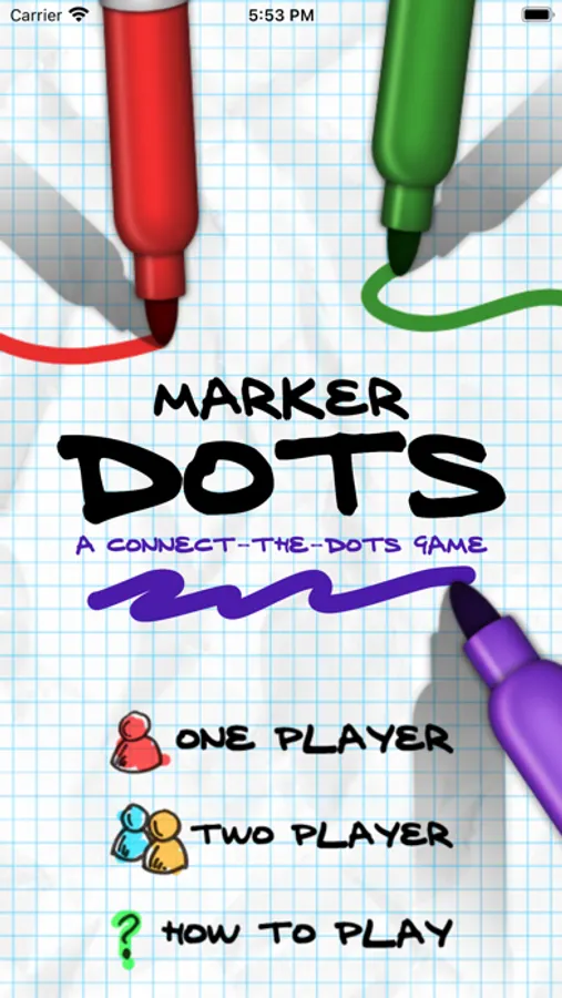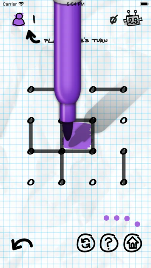 Marker Dots, based on the classic Connect-The-Dots game that used to be played with pen and paper, now in its digital version, to provide countless hours of fun. Try to beat the machine or challenge your friends to a friendly match of connect-the-dots, with a beautiful interface based on a marker theme.