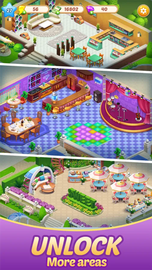 Create your ideal eatery right away! You're going to remodel and furnish. You must create and decorate each space beautifully. You can put other stressed things out of your mind with the help of this entertaining merge game.
