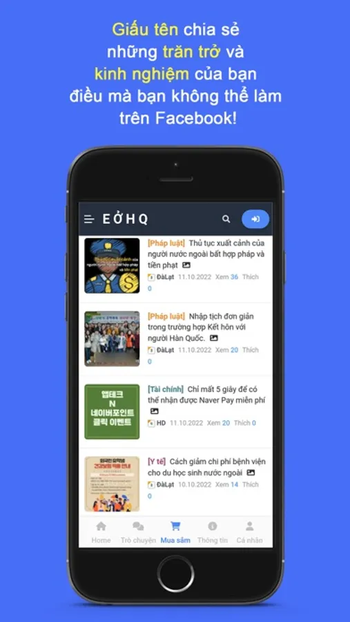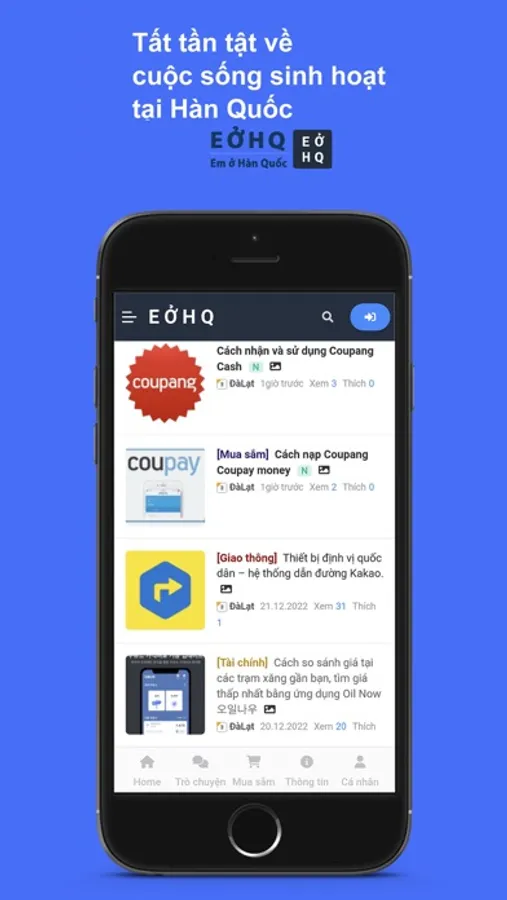 EOHQ (Em ở Hàn Quốc) là ứng dụng cung cấp thông tin tổng hợp dành cho người Việt sống tại Hàn Quốc. Chúng tôi cung cấp các dịch vụ dưới đây.
