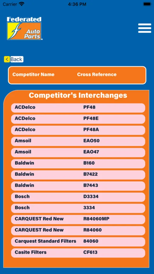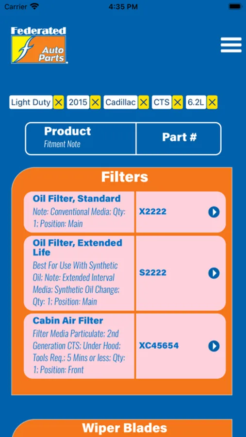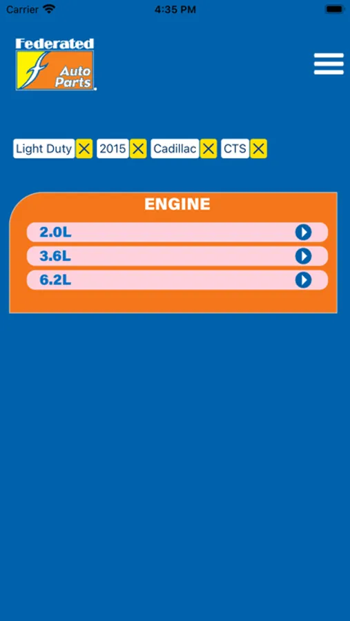 Choose the classic “Search By Vehicle” lookup to search by your vehicle’s year, make, model, and engine or switch to the updated “Dynamic Search”. With the dynamic search box, you can search for your vehicle by typing part or all your vehicle’s description and selecting from the suggestion list. You can also use the dynamic search box to enter a Federated part number to get to the product information page or enter an OE or competitor part number to interchange it to a Federated part.