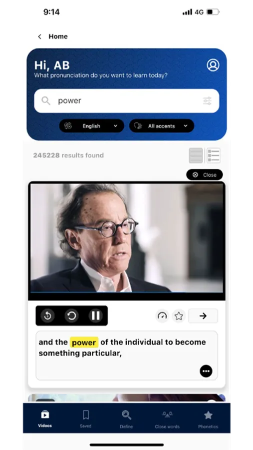 To help you hear the details of each sound, YouGlish allows you to adjust the speed of the player to your preference. And to take your fluency to the next level, you can record yourself speaking and track your progress over time.