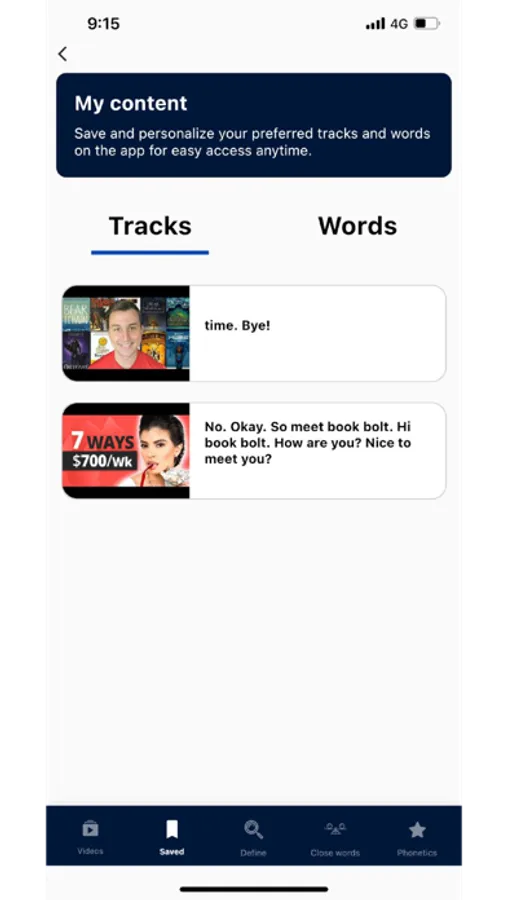 With our app, you'll have access to dictionaries, translators, and phonetic transcription tools to help you master the nuances of your target language. You can also save tracks and words to manage your content and easily find what you need to focus on.