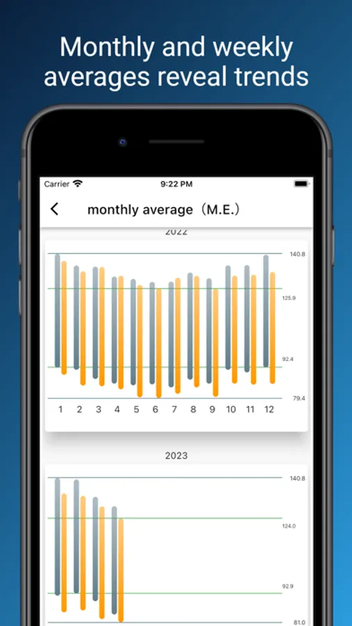 When you set target values for blood pressure and weight on the setting screen, target lines are displayed on each graph and colors are displayed on the calendar screen, making it easier to visually understand the degree of target achievement.
