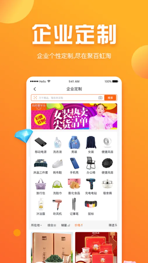 聚百虹淘是一款礼品全案定制采购电商平台,十万件礼品商品在线采购,支持企业定制,企业服务,宴喜礼请等丰富多样的礼品服务模式。