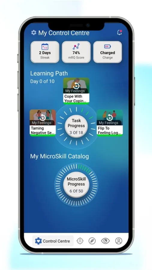 mfIQ is the Digital Gym for improving Employee Mental Fitness. Employers provide mfIQ to their Employees to build a Flourishing Workforce. Employees improve their mental fitness IQ by learning and practicing MicroSkills across five dimensions: My Body | My Feelings | My Thinking | My Connections | My Leadership