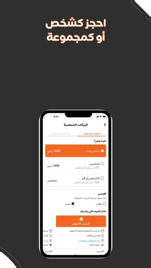 - تحجز مقعدك في الدورة المناسبة لك.