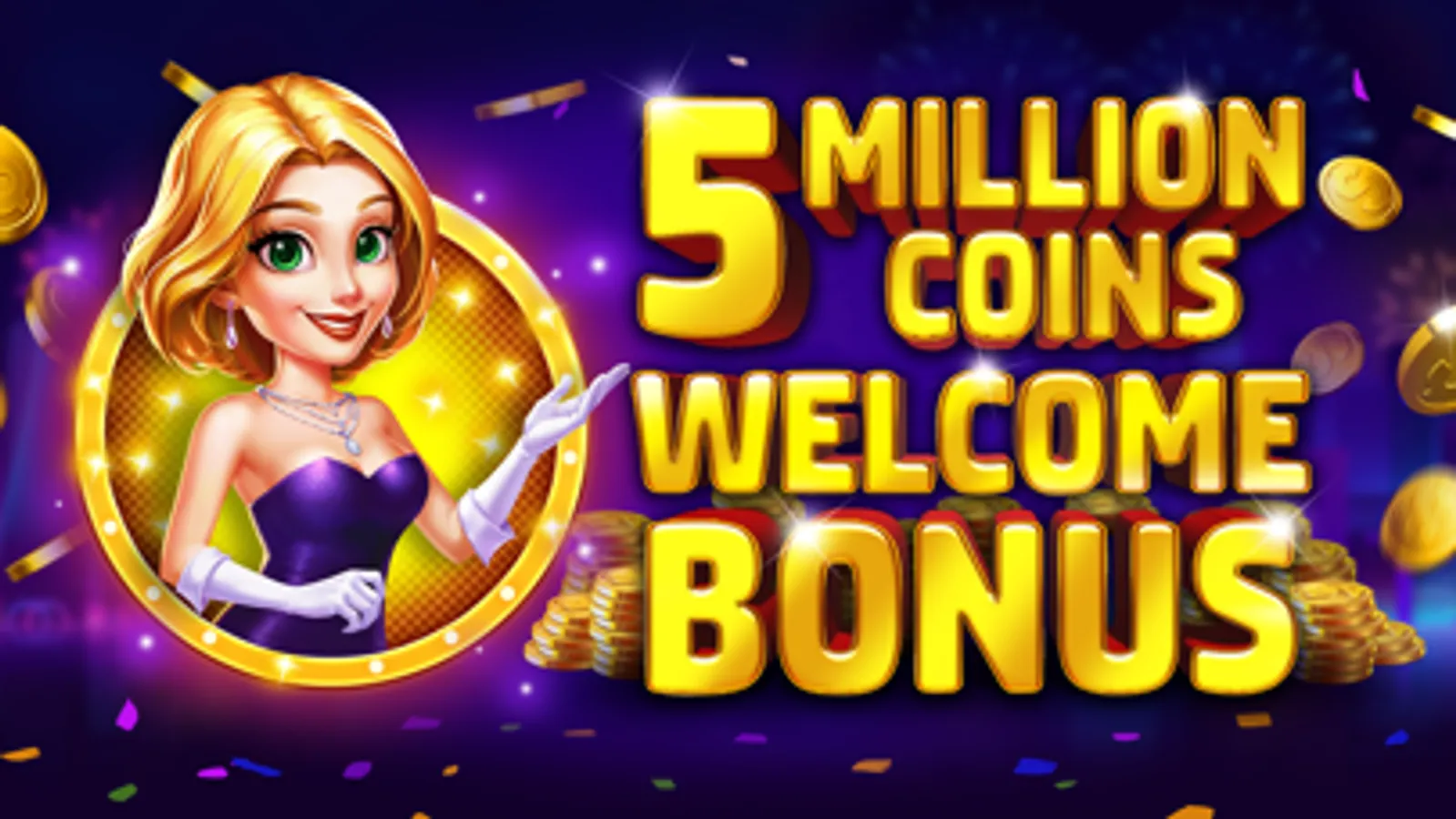 • Get a Welcome Bonus of 5,000,000 free coins to play popular slot games
