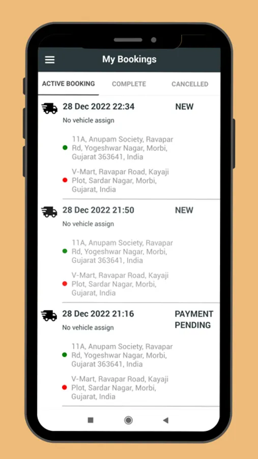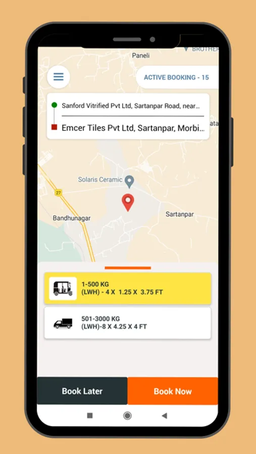 With the help of this app, you can easily book a load of small trucks within Morbi city from anywhere in the world for your tiles crossing service. You can enter your starting and ending destination. You can choose vehicle type and weight then you can book transport for morbi city.