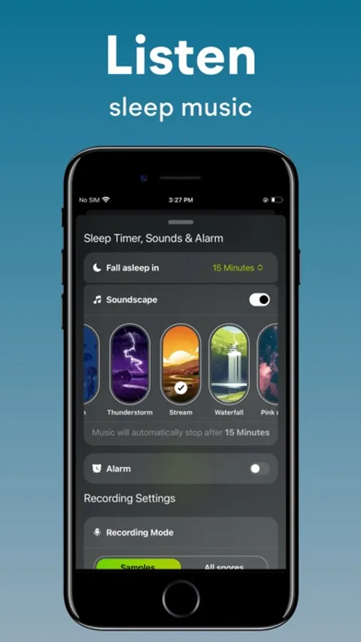 Before the timer starts, you can play your favourite sleep sounds that will help you fall asleep.