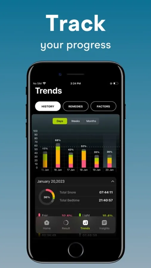 Snore Tracker : Apnea Monitor app is one of the simplest and most insightful apps of its type. It records and tracks snoring and assists you in finding snoring patterns by giving a full analysis chart.