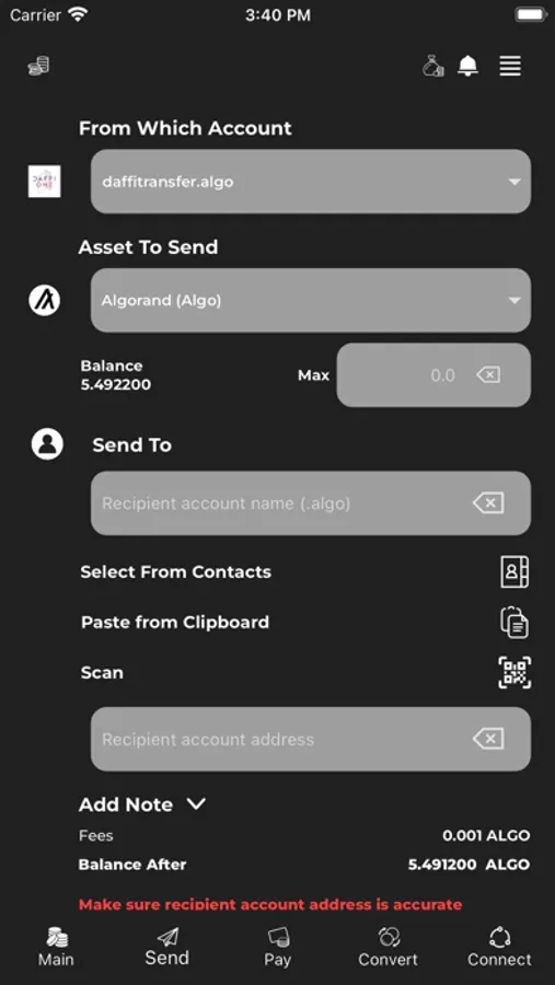 The JDEWallet allows JD Euroway clients with Algorand blockchain accounts to: