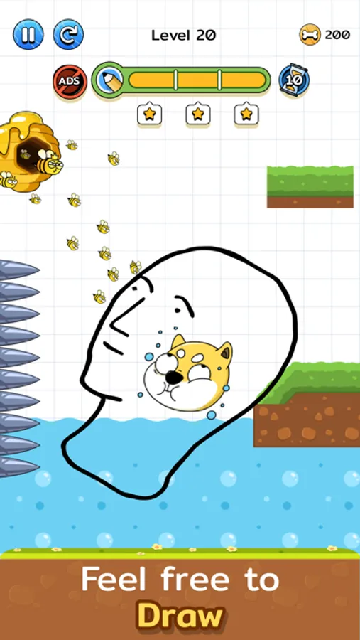 Your silly dog is curiously walking toward the hive. Before it's too late, let's save the dog! This is the addictive game for you! You can play this game to train your brain, moreover, save the dog is one of the most interesting draw games that help you to challenge your mind. Play now!