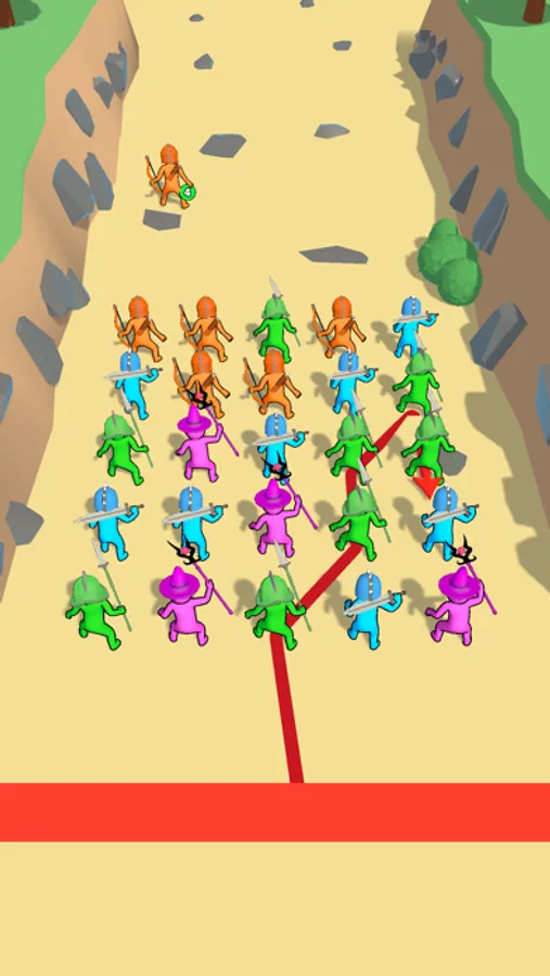 When soldiers are joined by an arrow, they merge and become a high-level soldier.