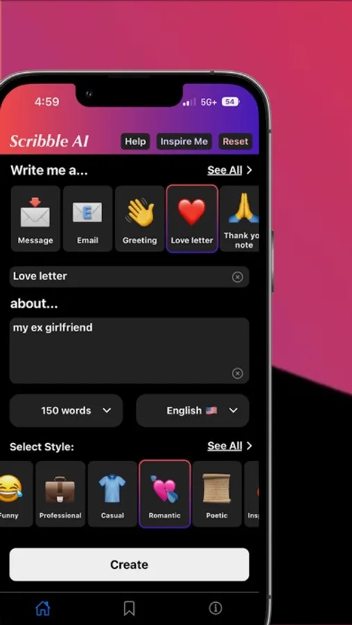 5) Then hit "create" and let Scribble AI do the rest. If you're not satisfied with the output, simply hit "re-create" to generate a new version.
