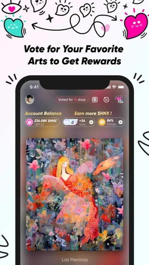 In HeartX's unique HeartX Voting System, when users open HeartX every day, they can view a certain number of artworks pushed to them one by one, and they can choose to swipe right to "Like" or left to "Next" to indicate that they like or dislike the work. The number of votes will become a HeartX Index attached to the work, symbolizing the work's popularity in the community. The HeartX Index will be a vital reference for users investing in artwork.