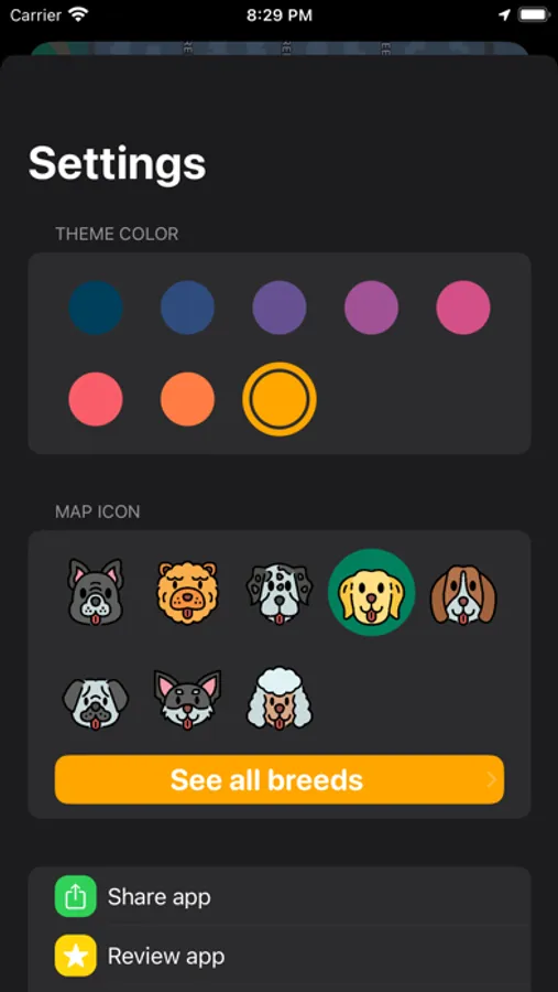 The map icon and the theme of the app are fully customisable.