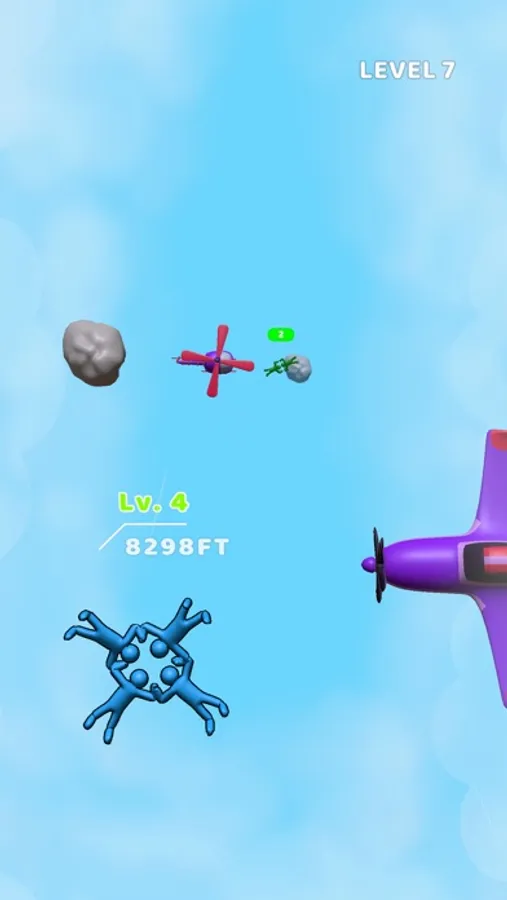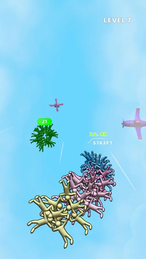 In this thrilling mobile game, you play as a guy who jumps out of a plane and floats down while collecting other jumpers along the way. If the levels of the jumpers you collect are lower than your own, your guy will grow in numbers. However, if you crash into an obstacle, you will lose level and some of the guys in your group. Your goal is to reach the end without crashing.