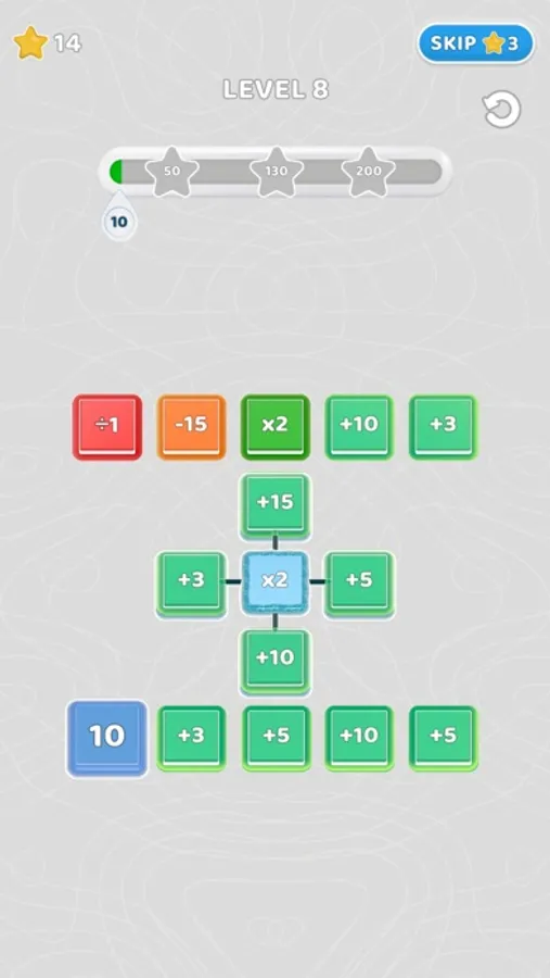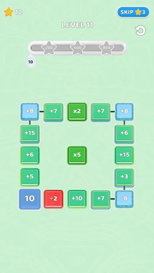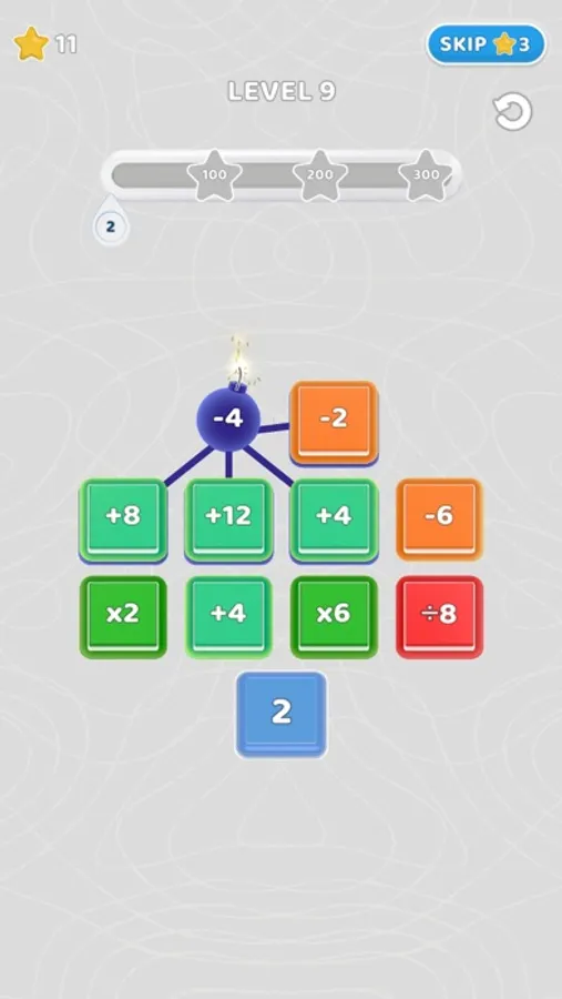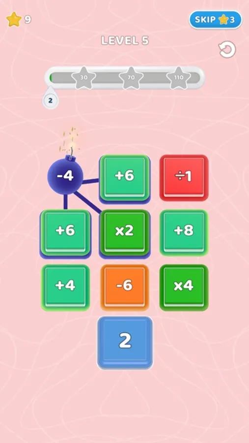 Come and test your intelligence and math skills with this fun mobile game! You will play with blocks that have mathematical operations on them, trying to get your main block to the target result or above by placing it on top of other blocks. When all blocks are finished, if the number on your block is equal to or higher than the target number, you will pass the level. This game will provide you with enjoyable time and also improve your math skills. Don't wait any longer, download the game now and start the challenge!