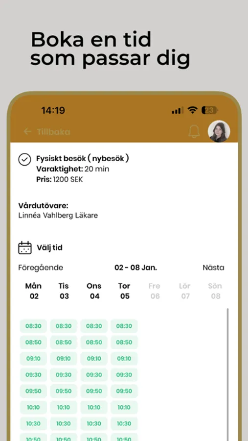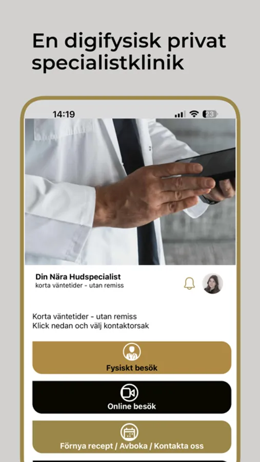 Logga in med Bank ID och påbörja ditt läkarbesök hos oss. Därefter kan du välja online besök eller fysiskt besök. Vid online besök, analyseras dina svar och bilder av specialistläkaren som sedan återkopplar till dig om ärandet blivit godkänt för online besök. Du går sedan in i ” Mina sidor ” för att genomföra betalningen. Om ditt ärande ej bedöms lämpligt för online besök, blir det kostnadsfritt för dig och då har du möjlighet att boka ett fysiskt besök i vår klinik i Örebro.)