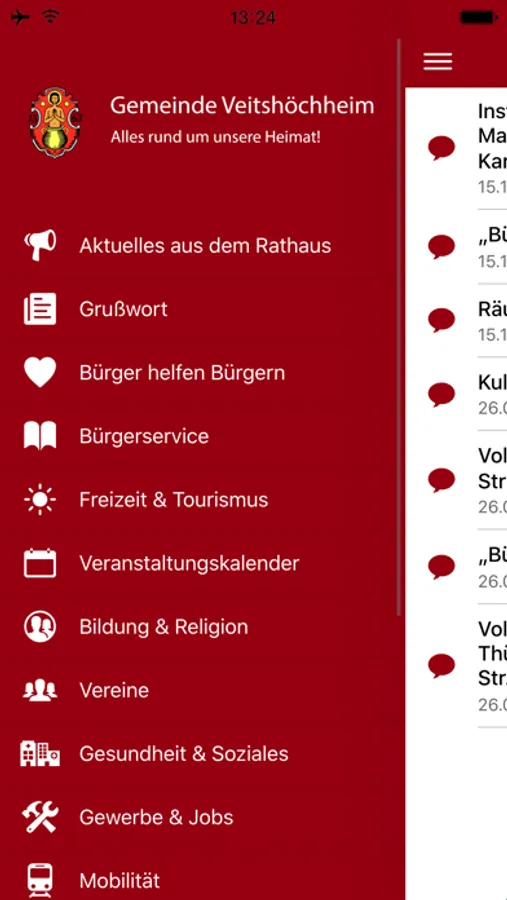Mit dieser App erhalten die Bürgerinnen und Bürger der Gemeinde Veitshöchheim alle notwendigen und wichtigen Informationen aus Ihrer Heimat direkt auf das Smartphone!