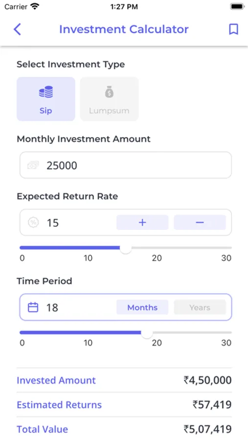 Enter your monthly investment amount and select your expected returns along with time period to view the calculations.