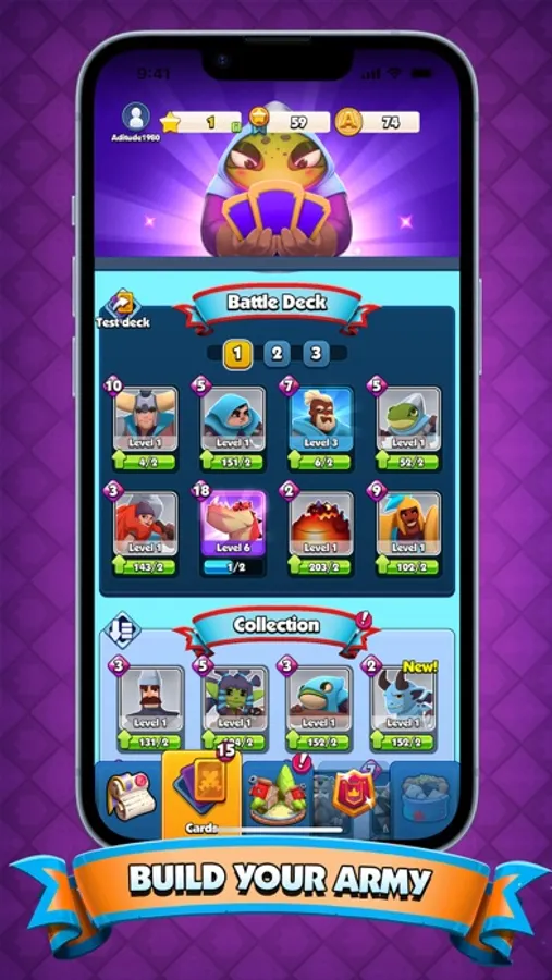 Build your collection and upgrade your units! Winning battles and advancing to new Arenas will unlock powerful new units for your collection.