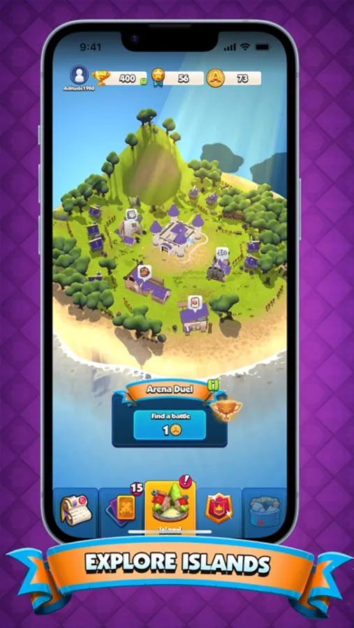 Join the fantasy-themed islands and get rewards from the residents. Choose unique units in your Battle Deck and head to the Arena for Battle! Place your units strategically and take down the enemy in fast-paced, tactical battles.